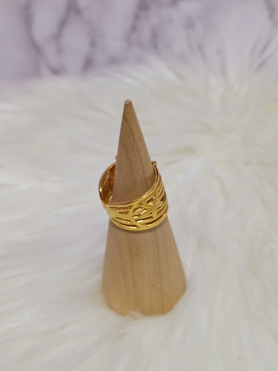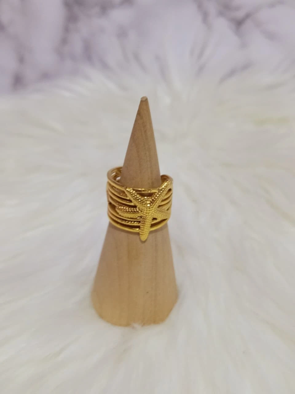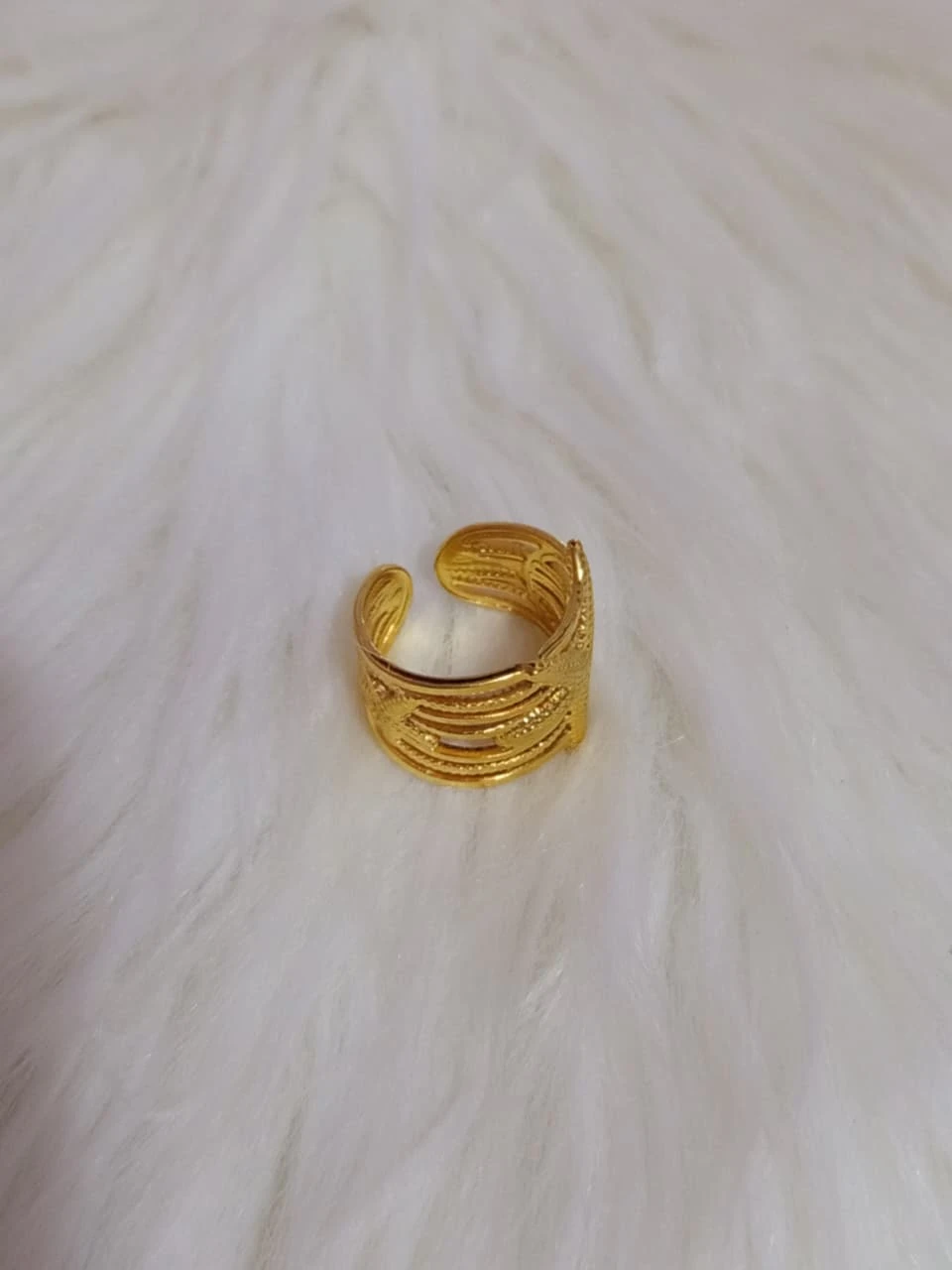 Lindo anillo dorado de acero inoxidable, grueso con detalles de Mar. Ajustable