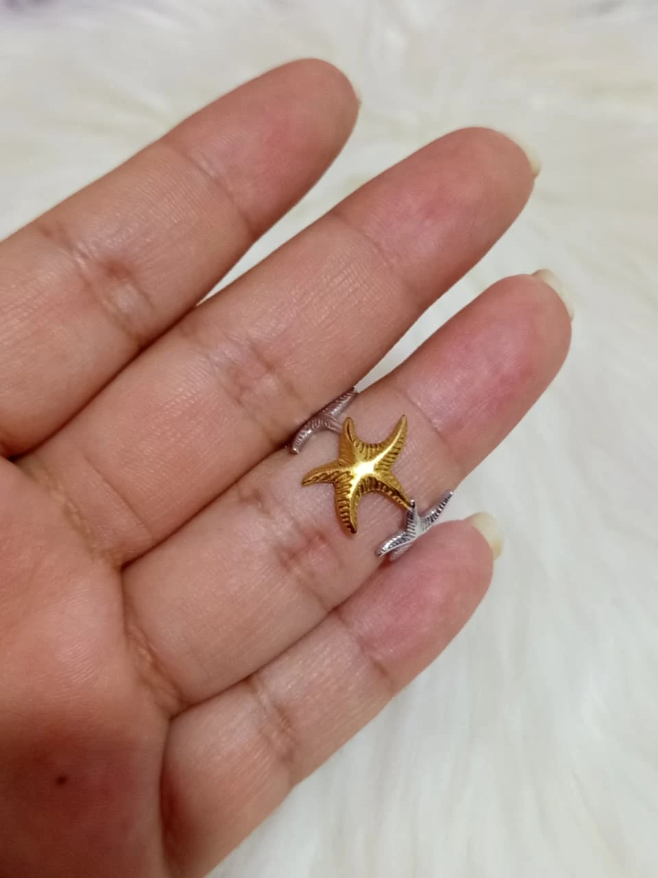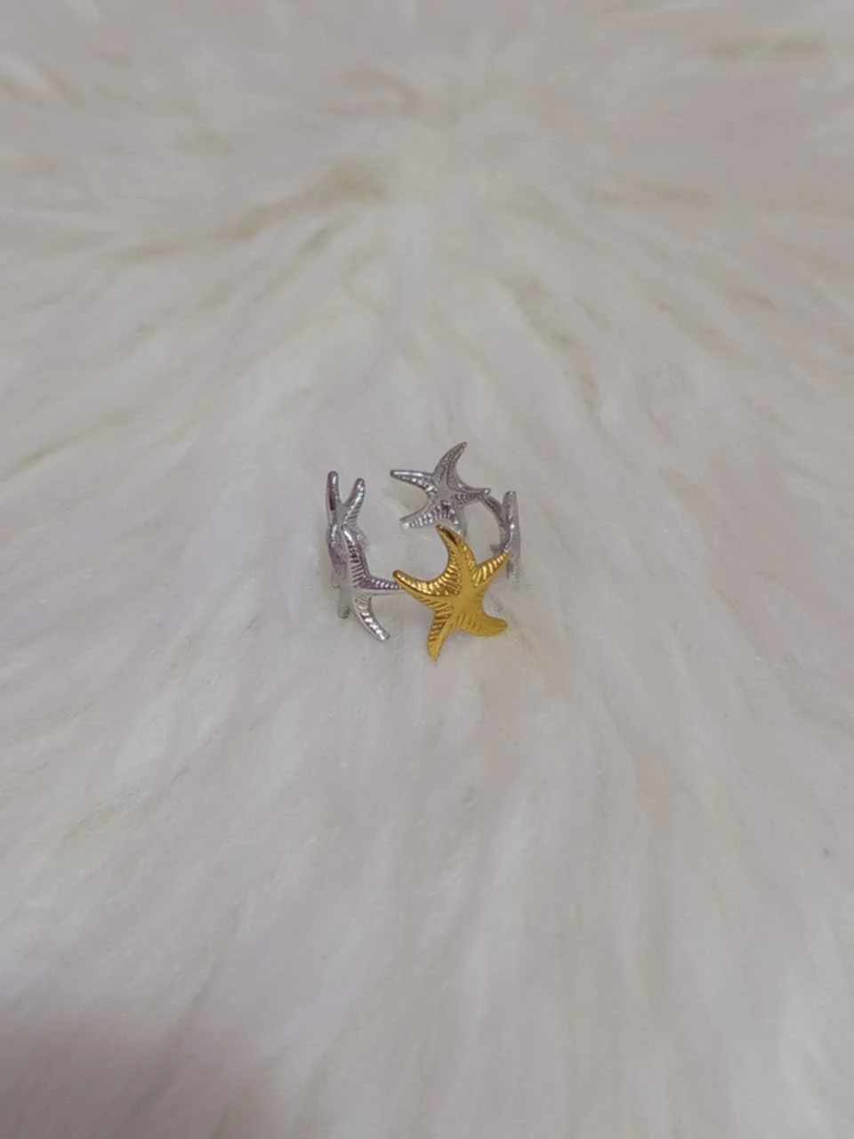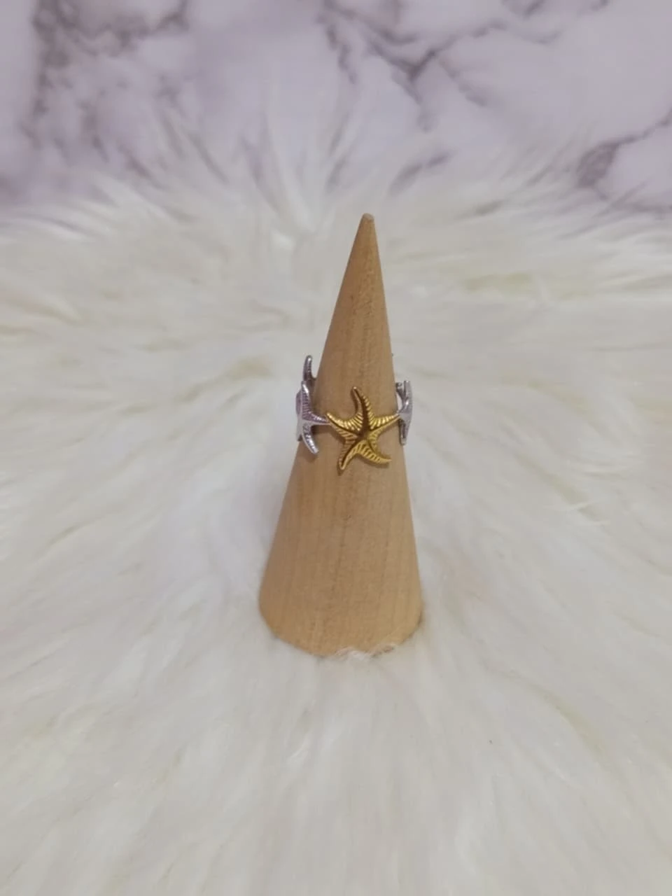 Anillo en forma de estrellas, color plateado y dorado. Acero inoxidable. Ajustable