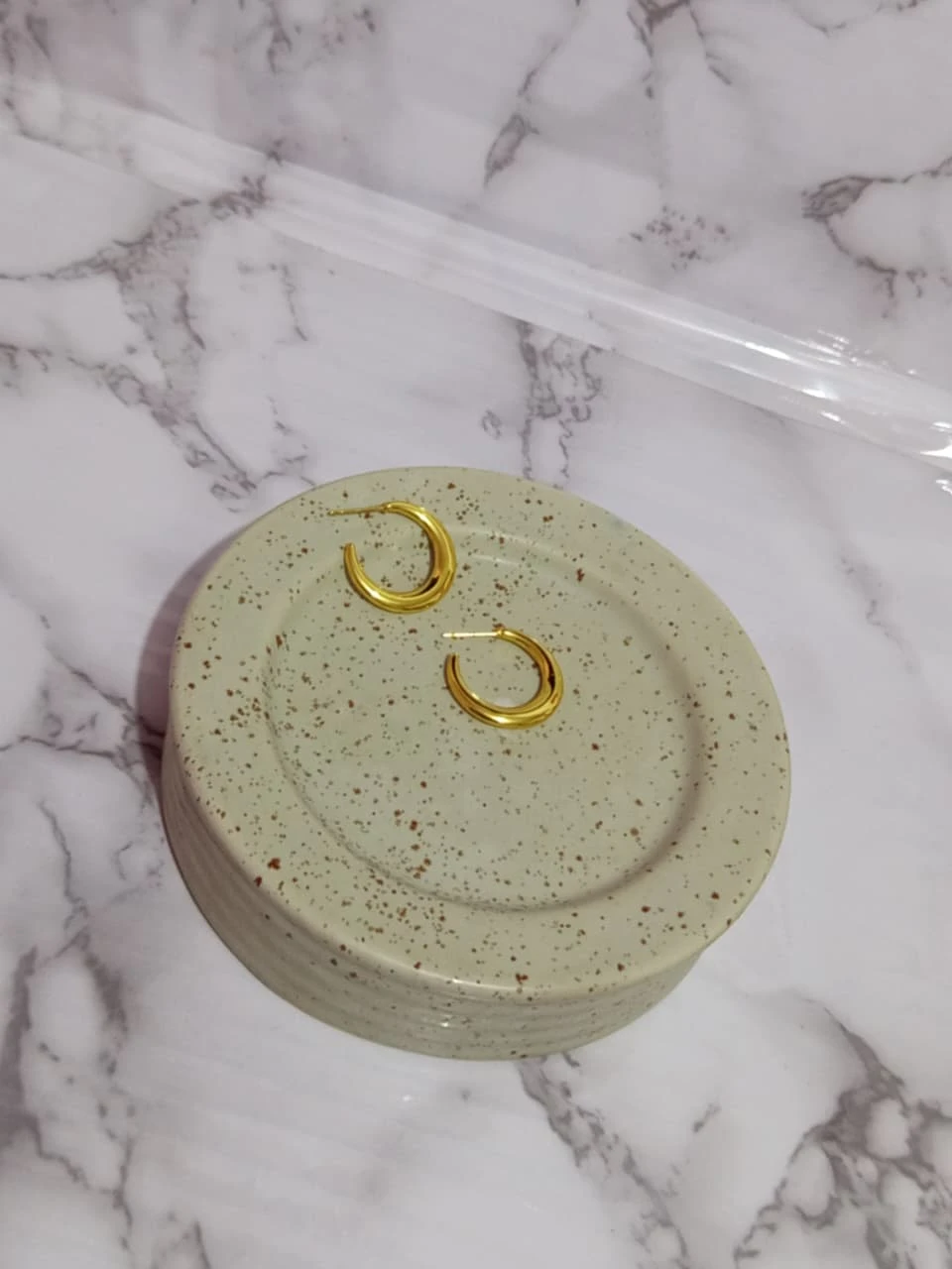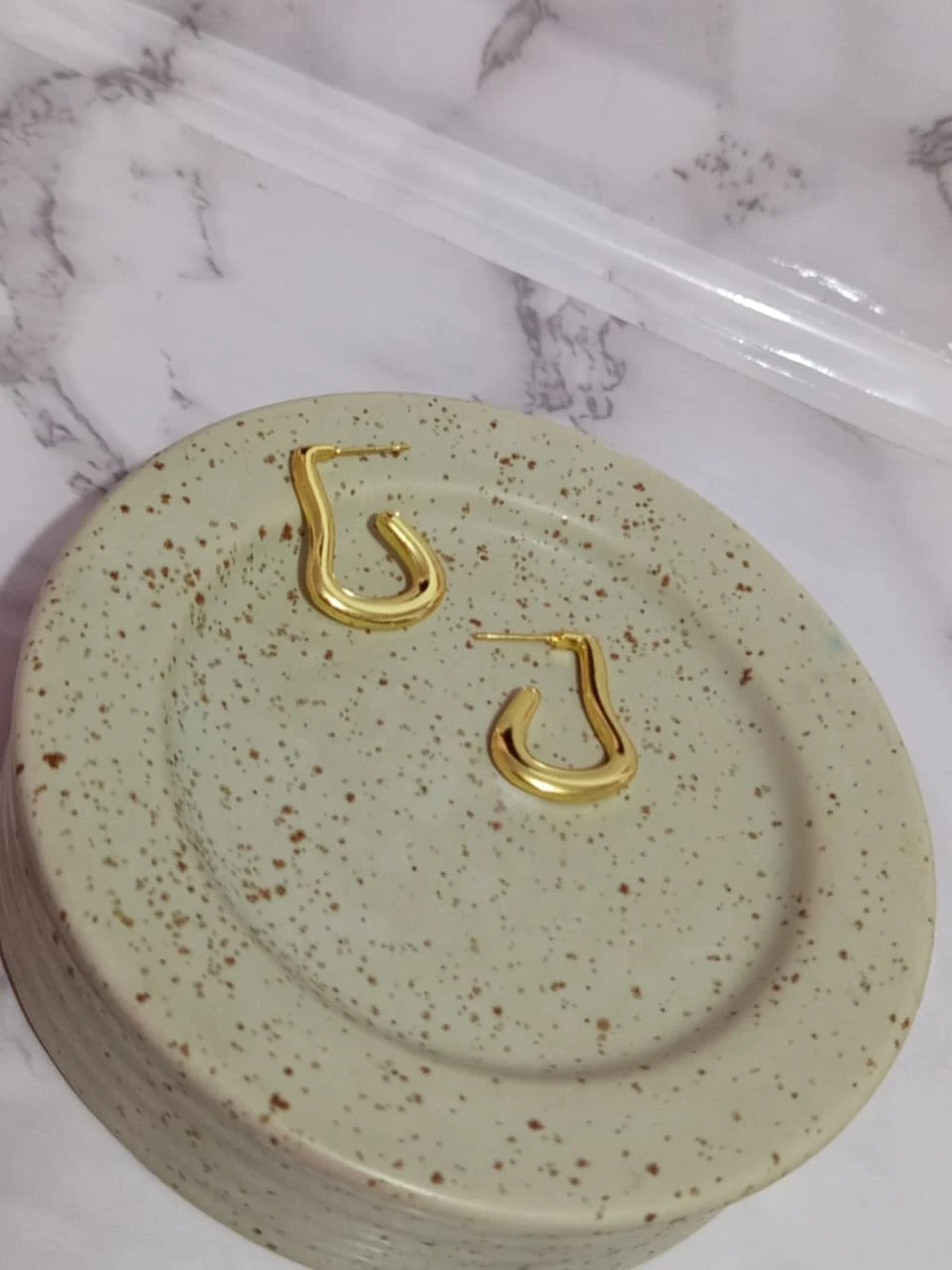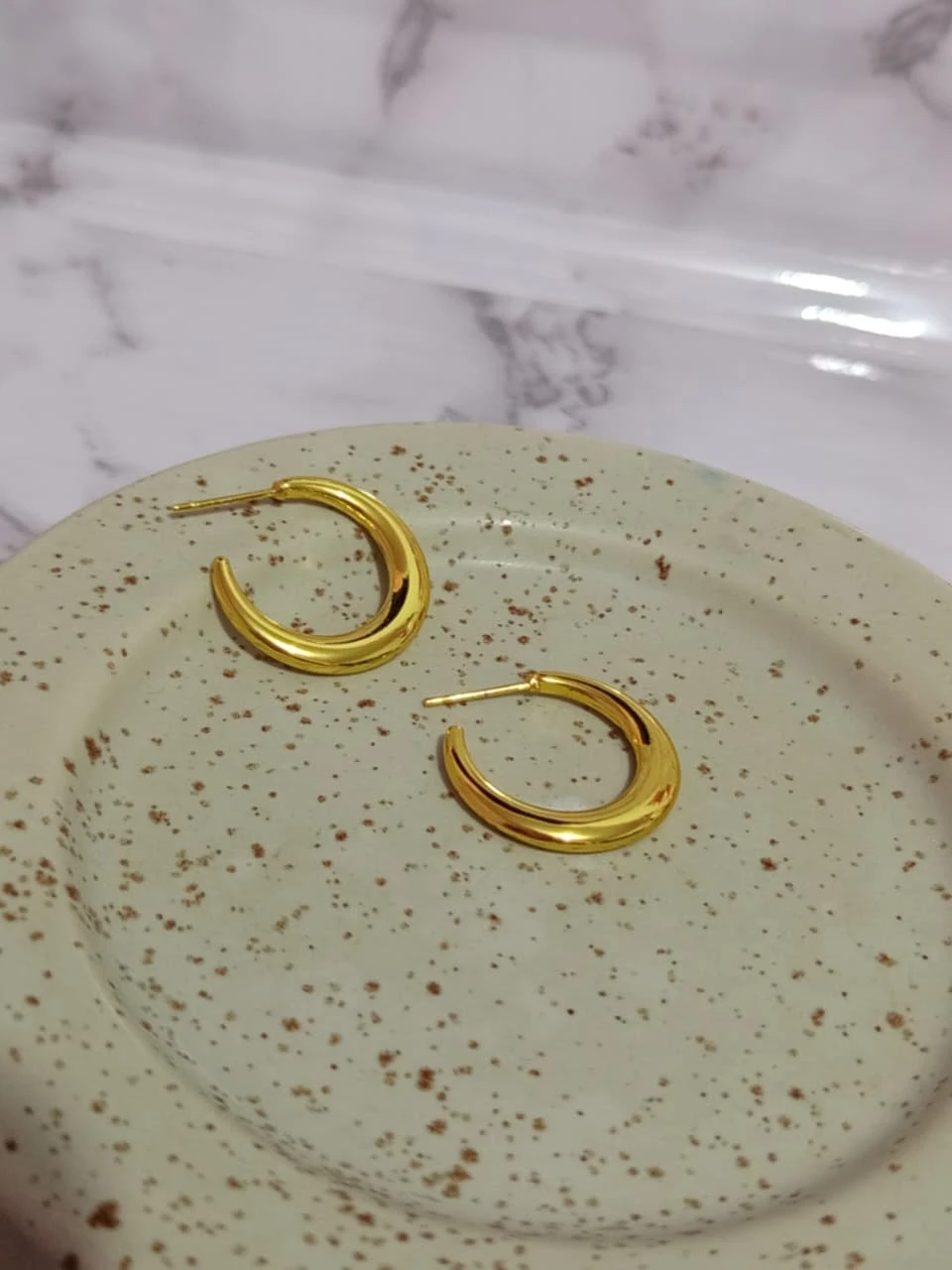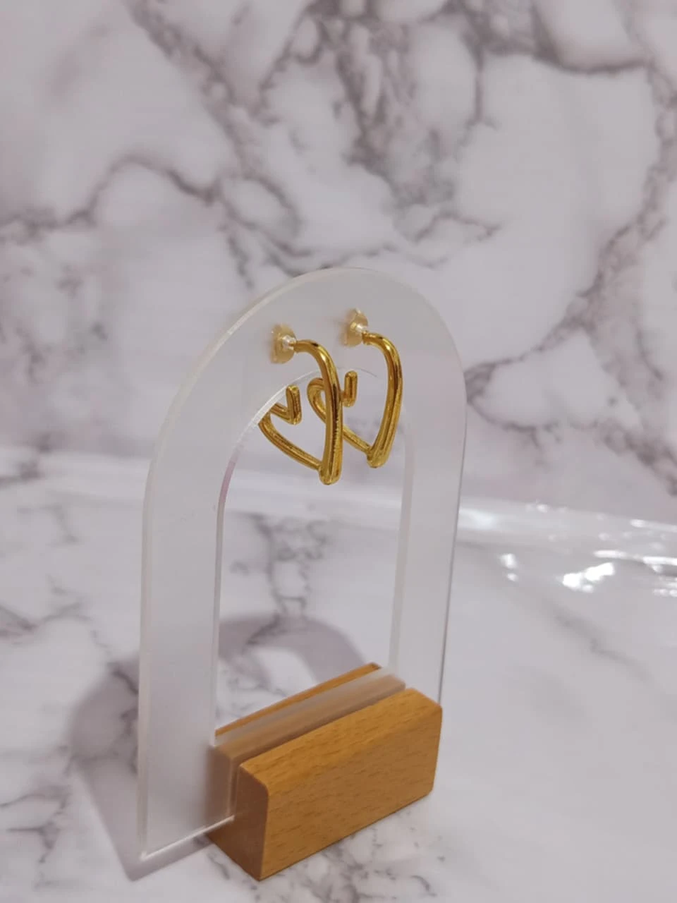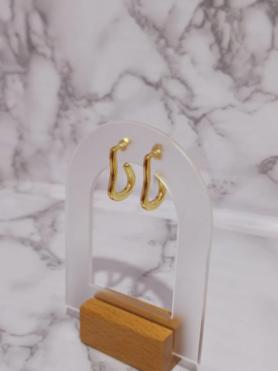 Aretes de acero inoxidable en color dorado, tipo aguja.