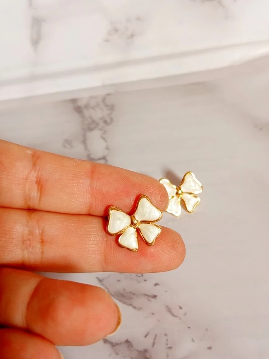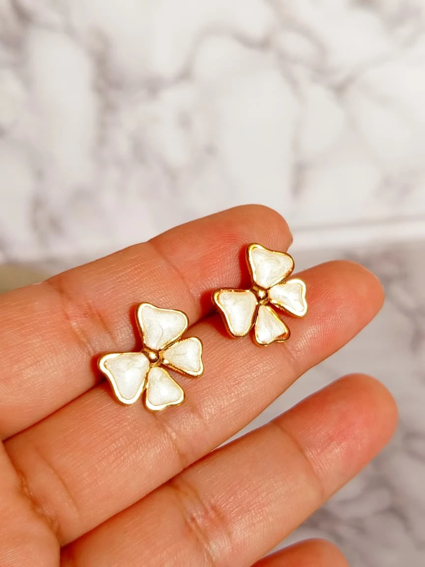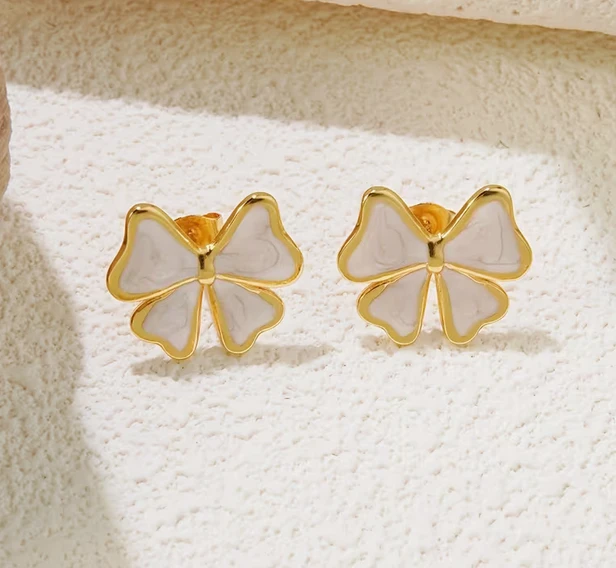 Aretes de acero inoxidable con diseño de lazo pero con aplicacion nacarados