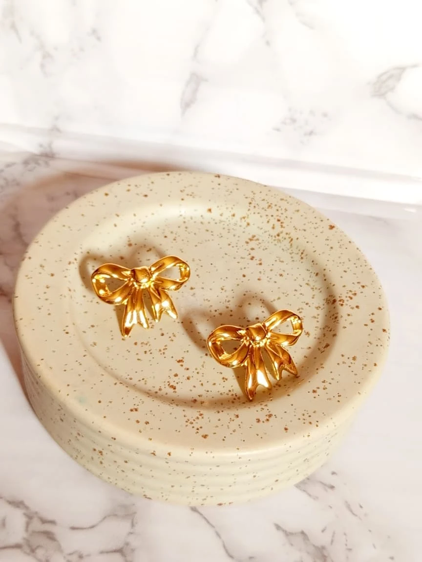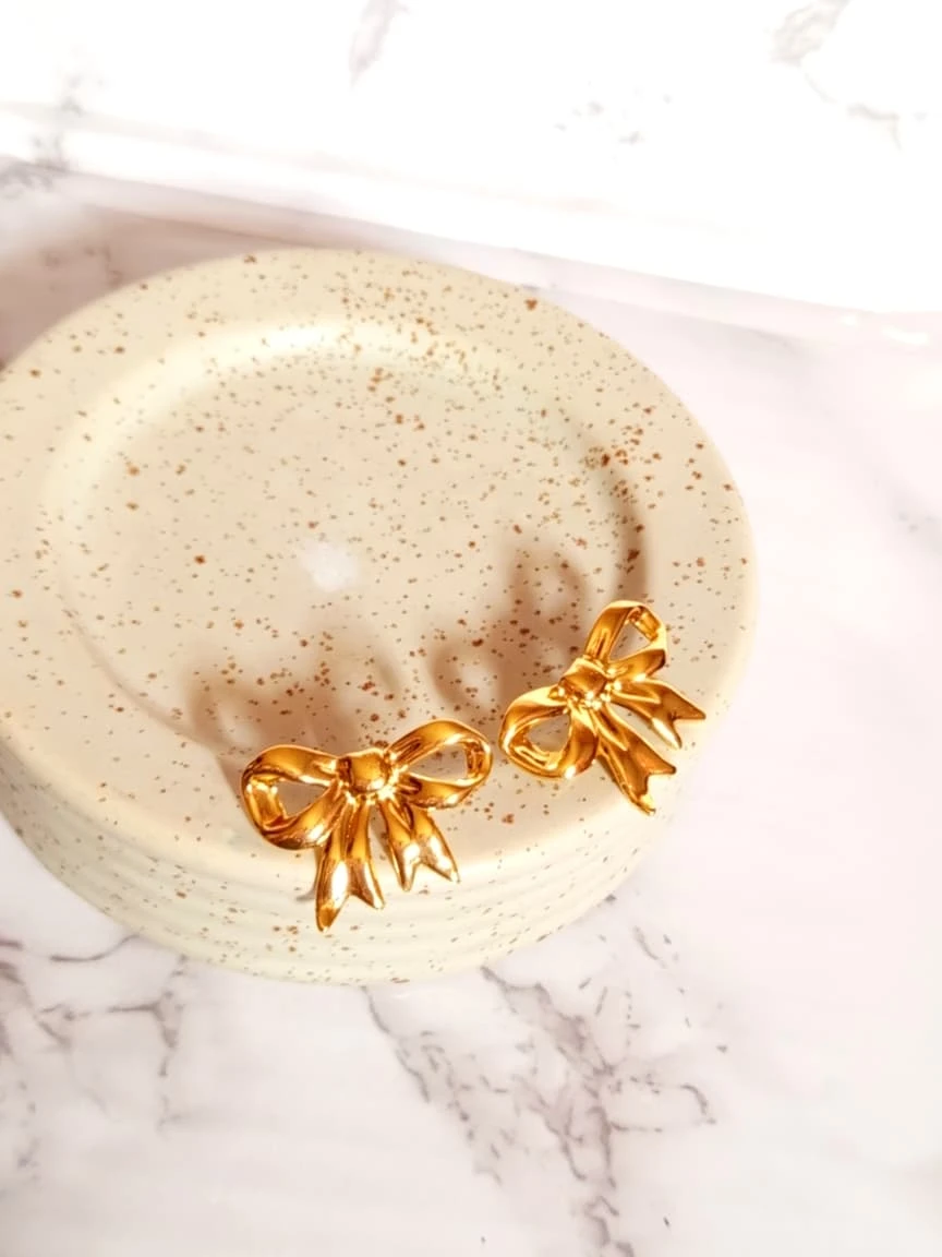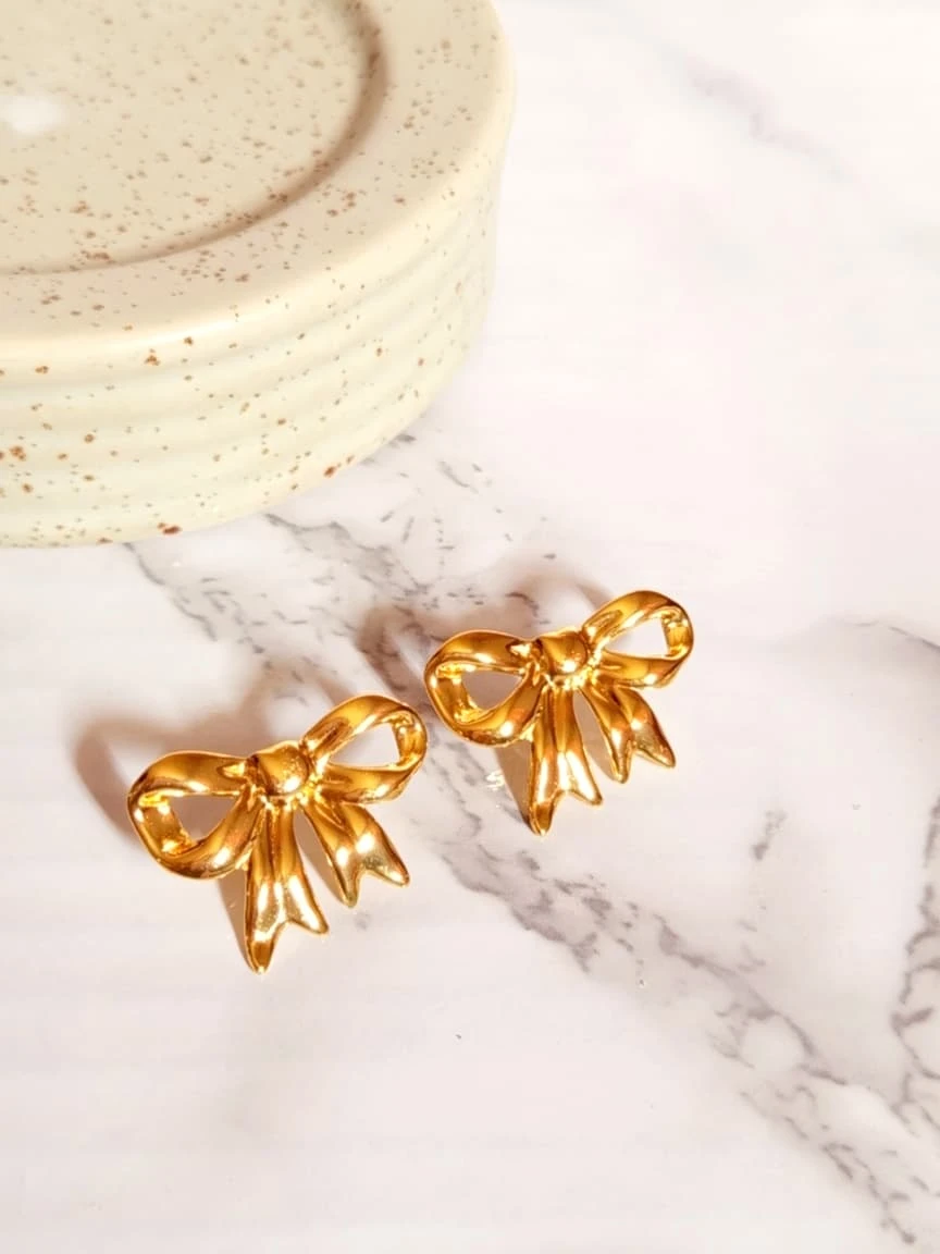 Aretes de acero inoxidable, en forma de lazo color dorado, Tamaño: mediano