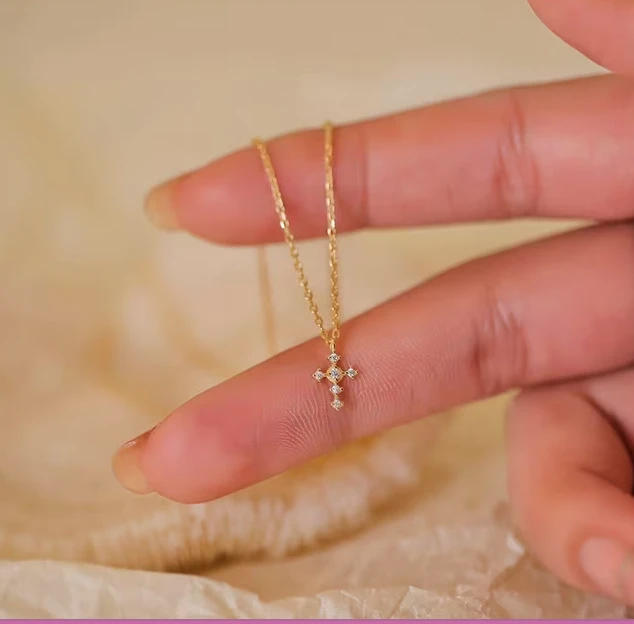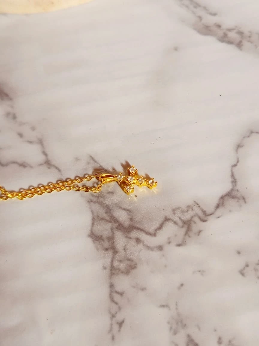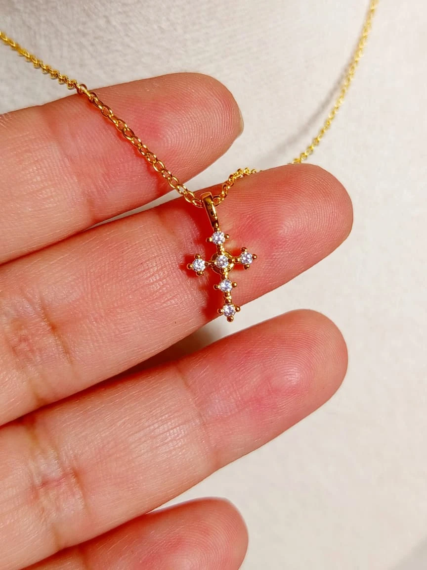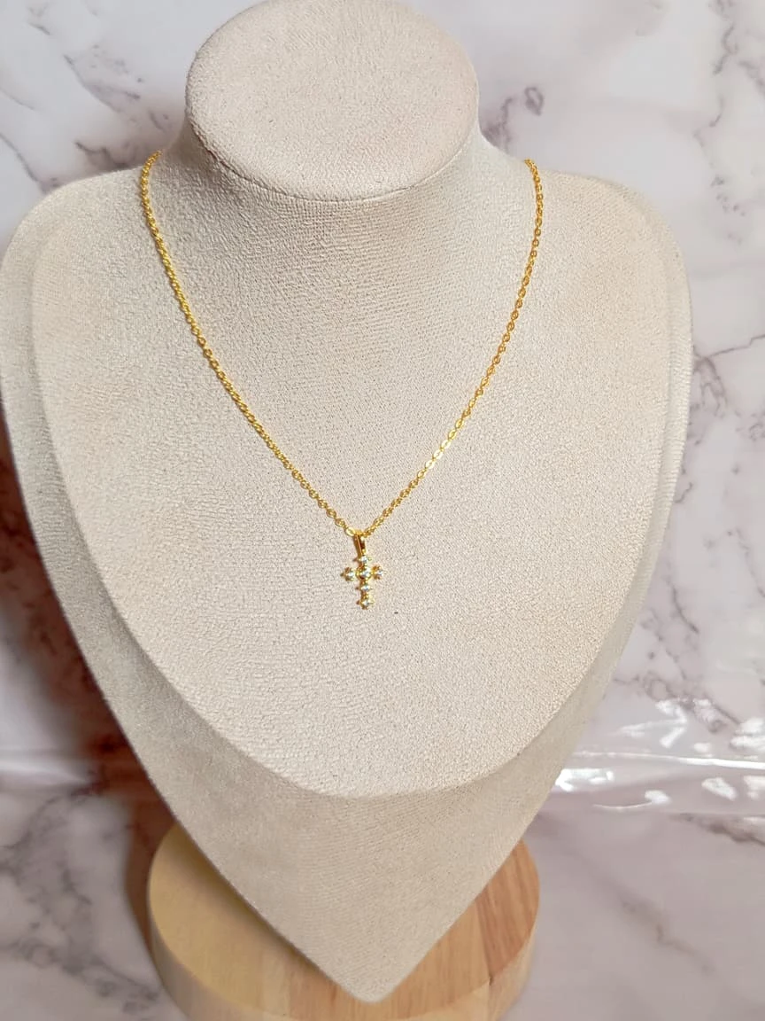 Collar de acero inoxidable con dije de Cruz con cristales de circon, Dije tamaño mini