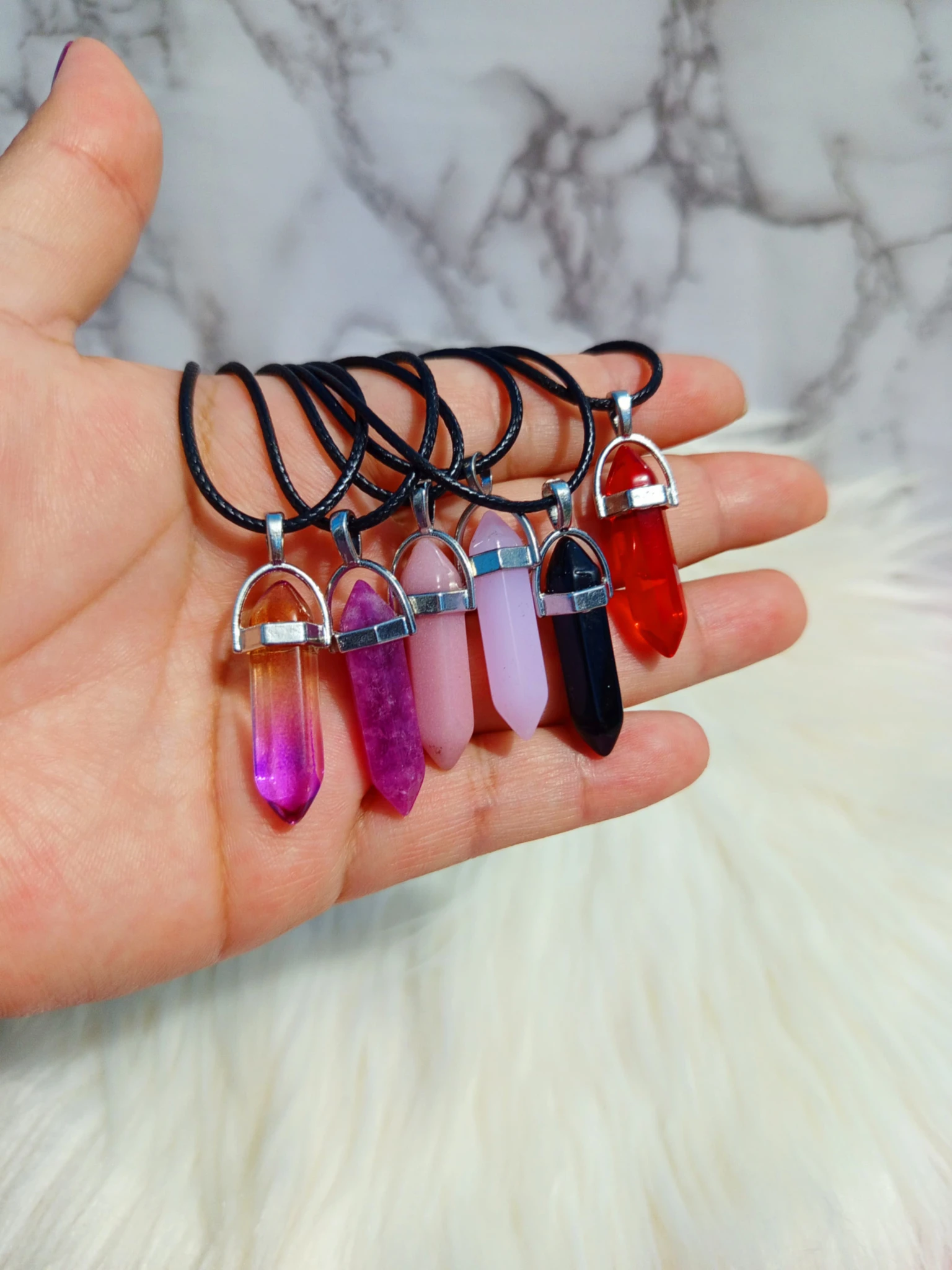 Collares con dije de cuarzo fantasia, distintos tonos y colores.