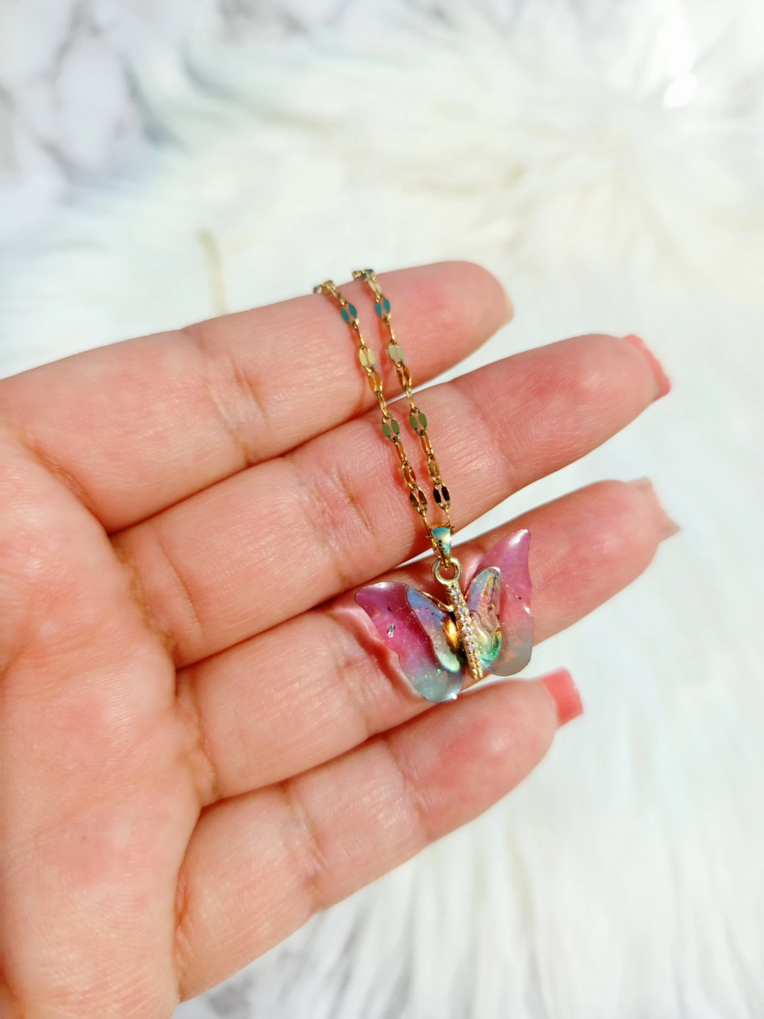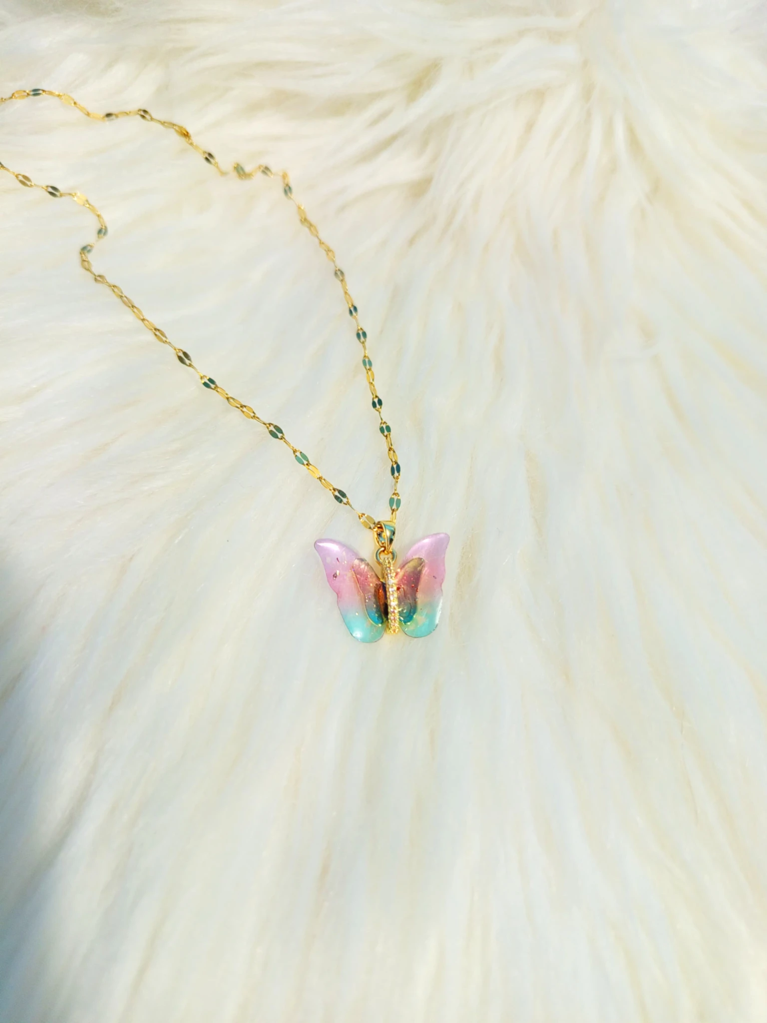Collar de acero inoxidable en forma de mariposa con incrustaciones de circon