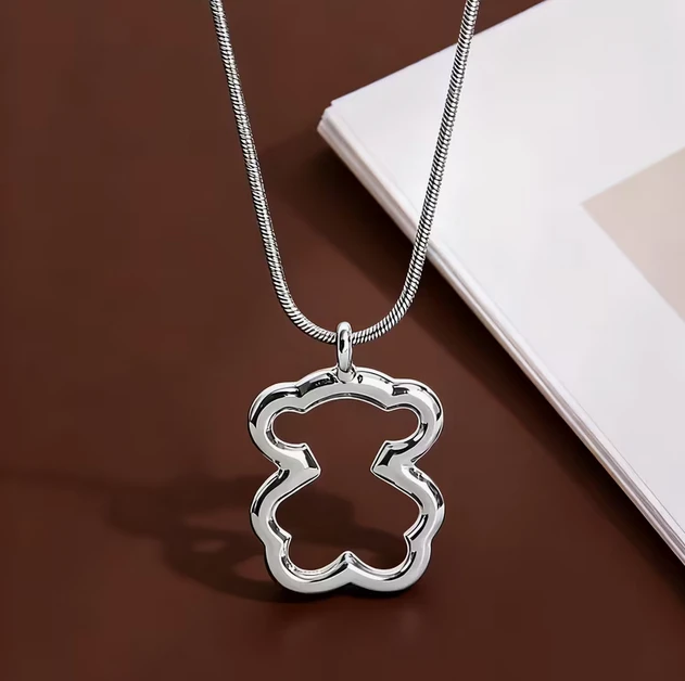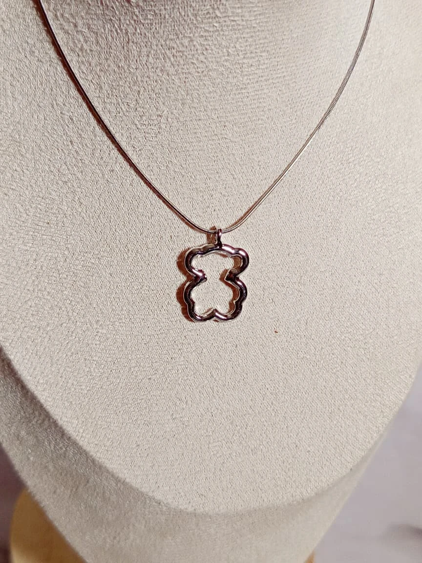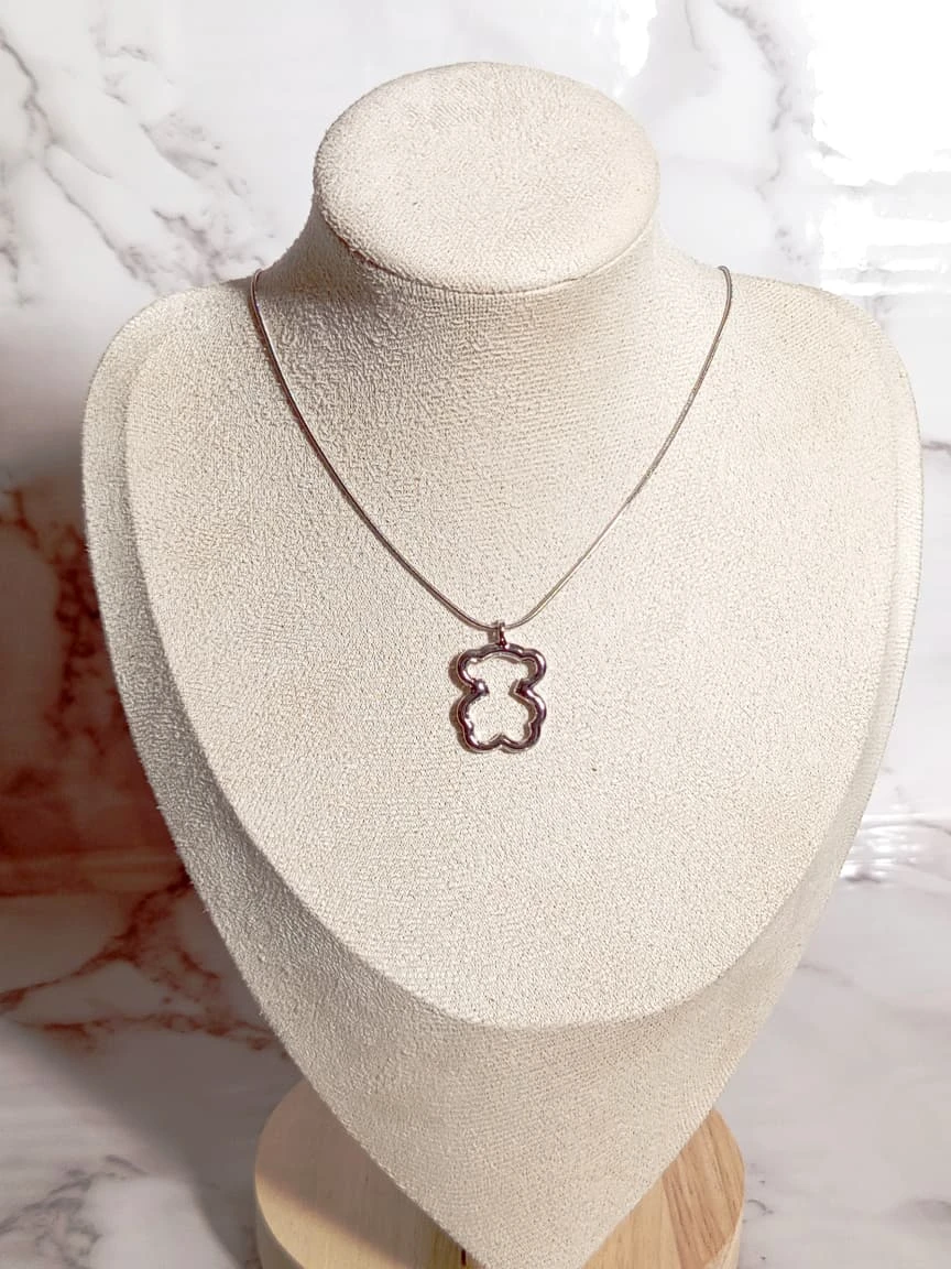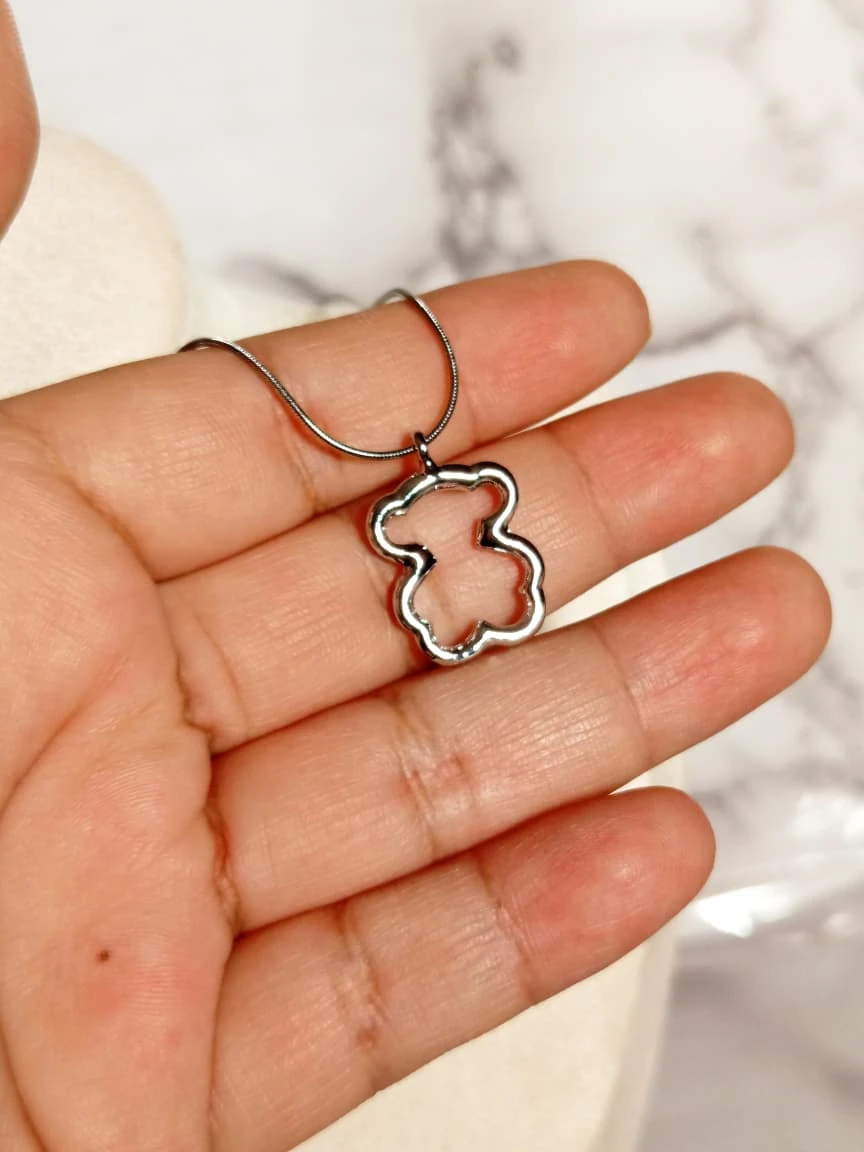 Collar de acero inoxidable en color plateado con dije silueta de osito