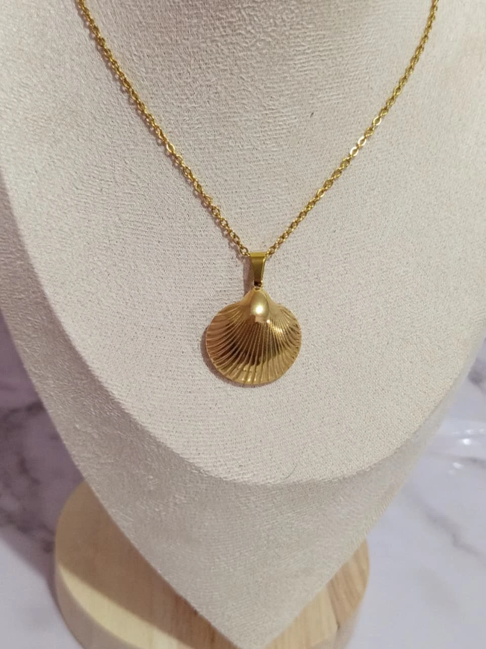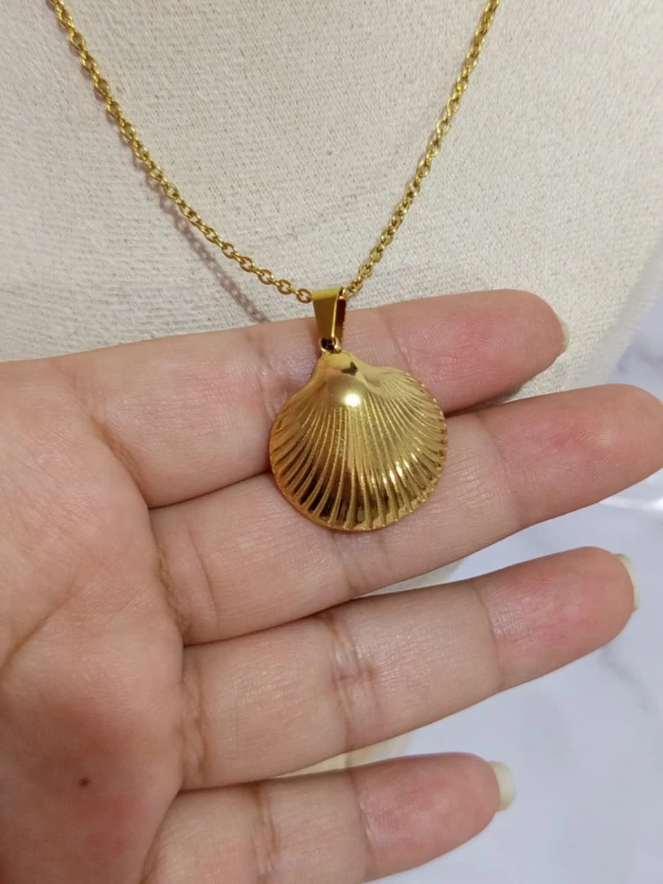 Collar de acero inoxidable con dije de concha. Pd: dije pesa un poco.