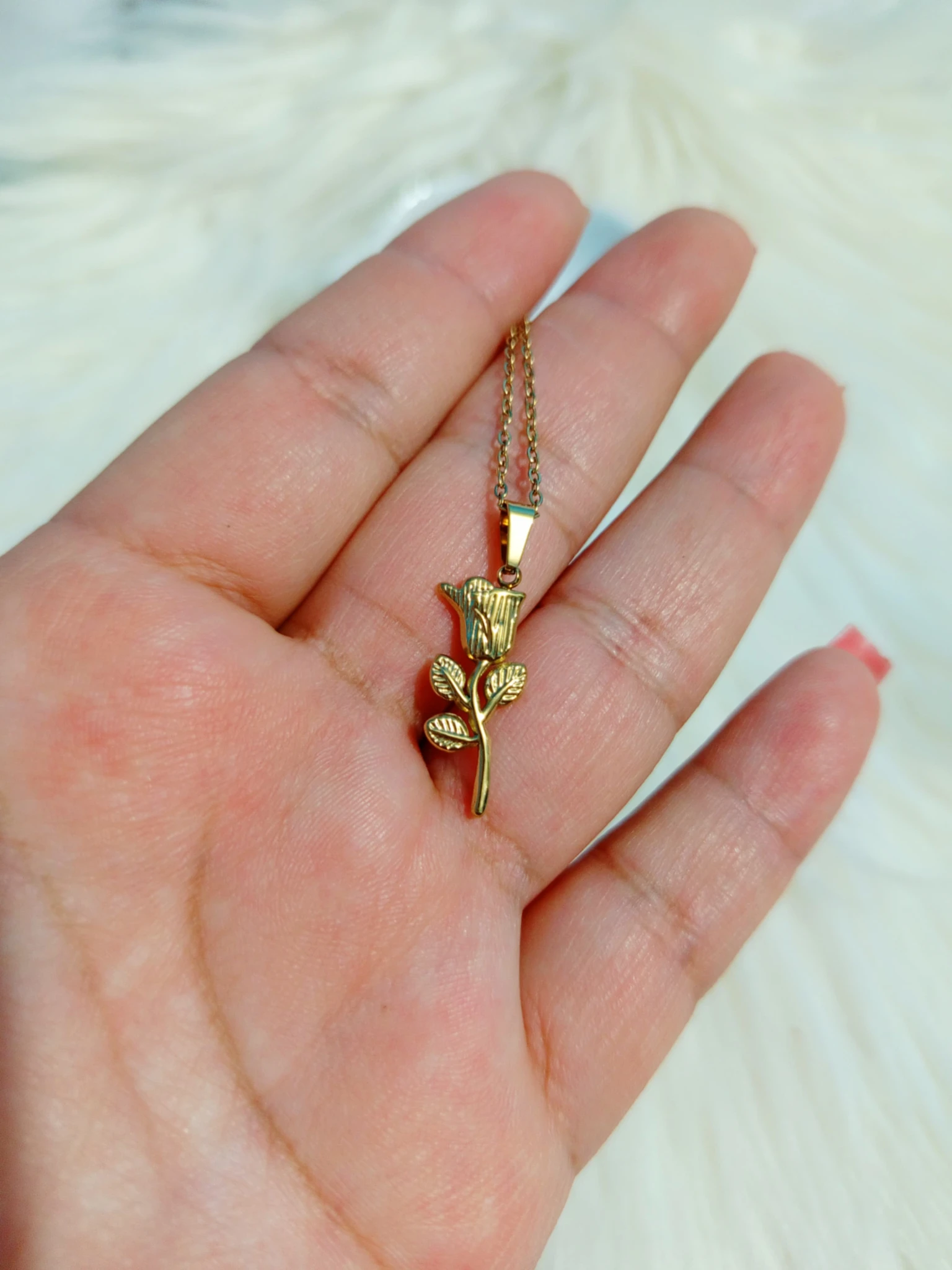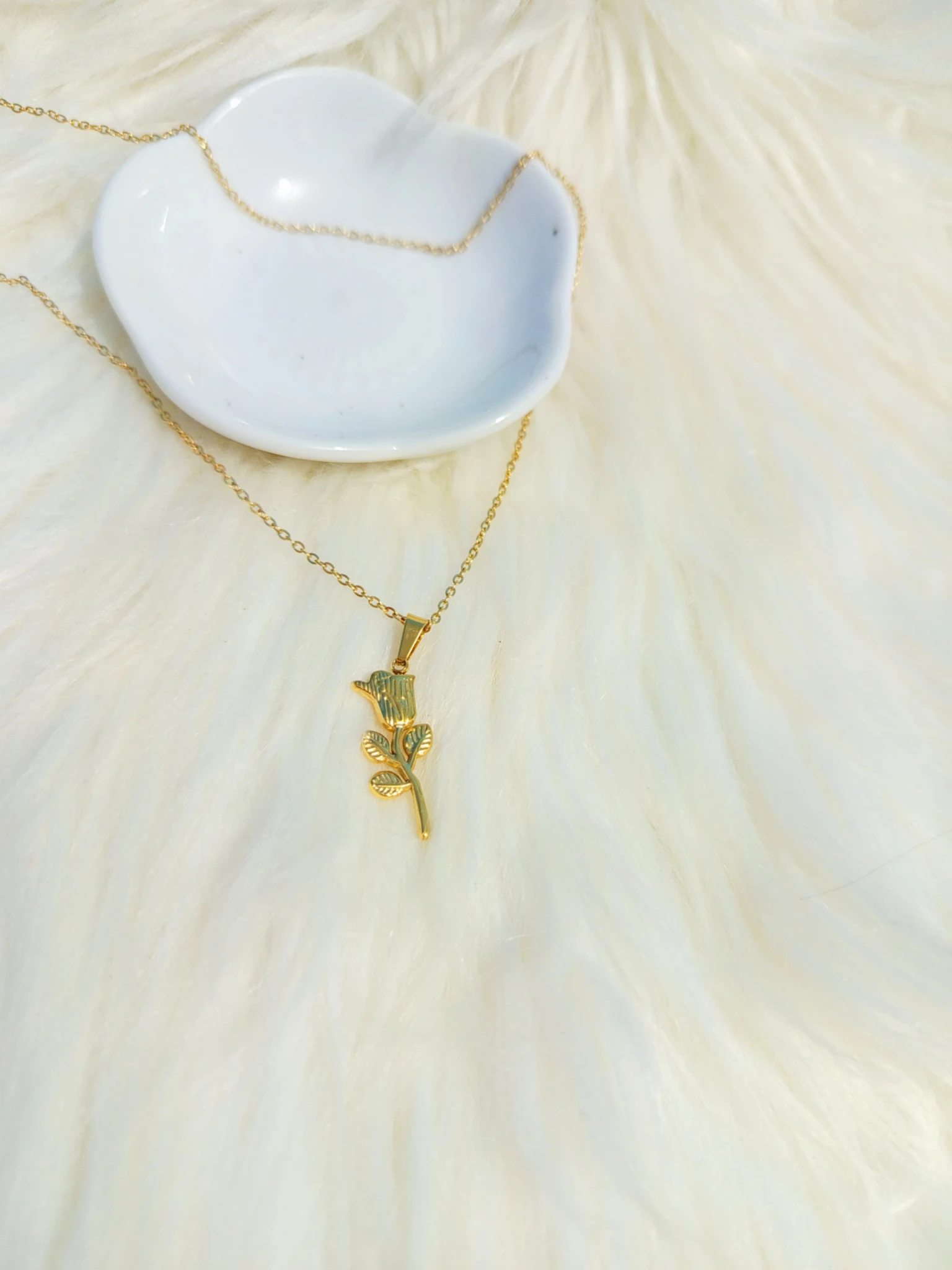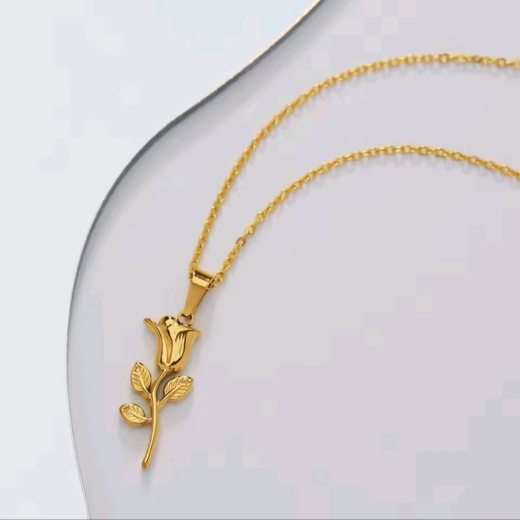 Collar de acero inoxidable con dije de rosa.