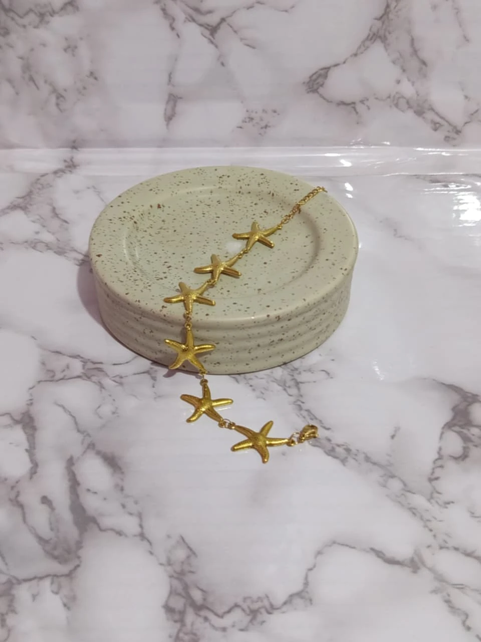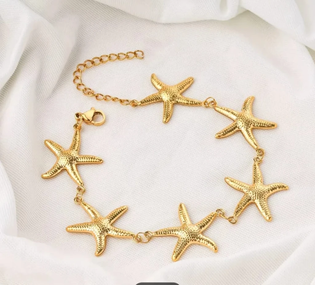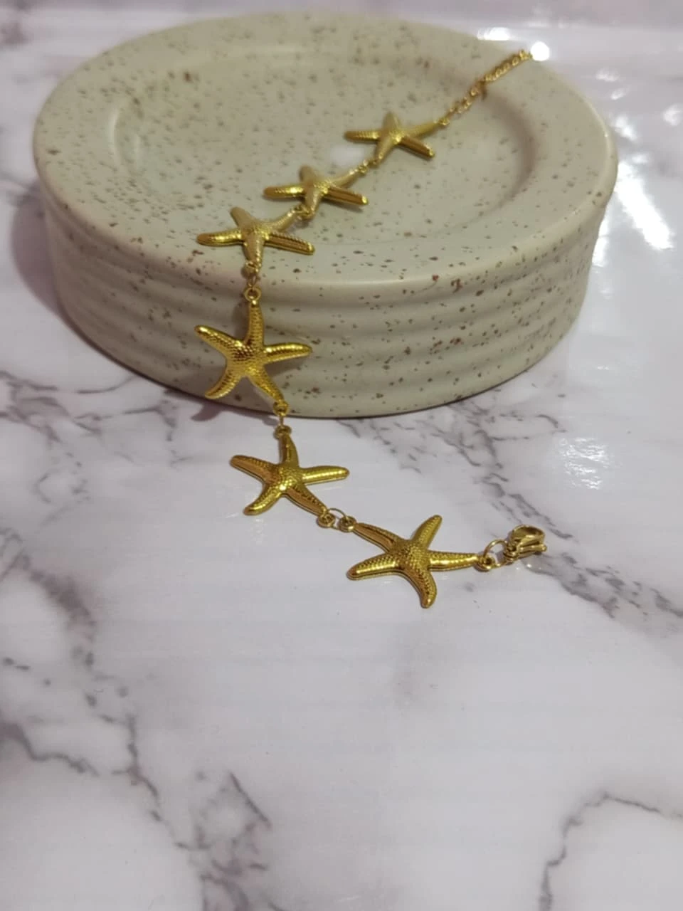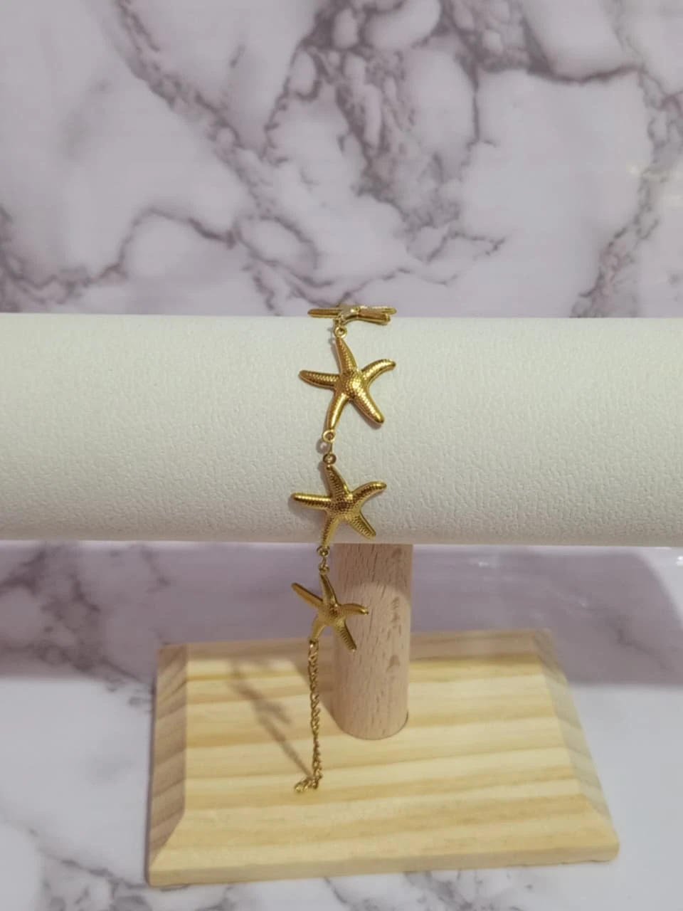 Pulsera de acero inoxidable, con diseño de estrella de mar, solo en color dorado.